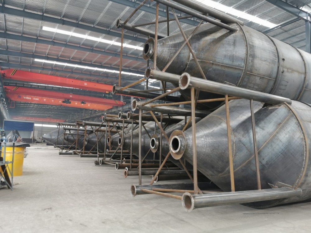 水泥倉為攪拌站專用的物料存儲設備,在整個混凝土攪拌站生產中中占有重要的作用,近年來水泥倉在工業建筑,城市建設,道路橋梁水利及構件廠等施工中散水泥等散料的儲備料倉,還可用于攪拌站散水泥儲備的配料設備。 水泥倉大體分為上、中、下三部分,其上面主要由是頂端、除塵器、護欄、人孔組成,頂端就是水泥罐的封頂
